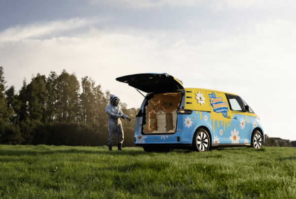 We launched the all‑electric Volkswagen ID. Buzz by turning one into a mobile beehive and sent it on a “Pollination Tour” across the North Island.